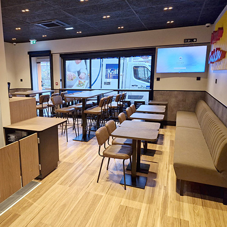 Ce projet à Rennes illustre notre expertise en agencement de boutique et aménagement dans le secteur de la restauration, et notre capacité à accompagner les enseignes de restauration rapide dans leur développement et leur évolution.