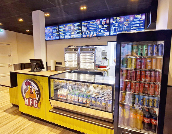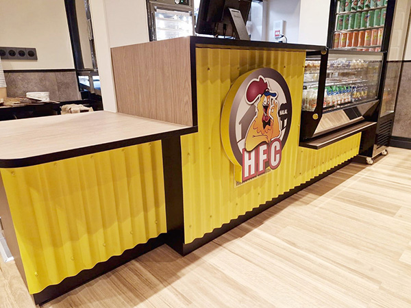 Dans le cadre du déploiement de sa nouvelle charte graphique, HFC – House Food Chicken, snack bar situé à Rennes, nous a confié l’agencement et l’aménagement de la zone comptoir.
